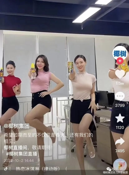 在刚刚过去的国庆假期里,椰树集团官方抖音账号开始尝试直播带货,按照官方微博预告,椰树集团抖音将在10月1日至7日每天都进行直播。但自1日开播后,有网友指出直播内容是几位身材丰满、穿着紧身的女主播边跳舞边展示产品,直播风格疑似低俗擦边。10月5日,椰树集团直播数次被平台掐断,停播两日后于10月8日晚重新开播,但再度被掐断。