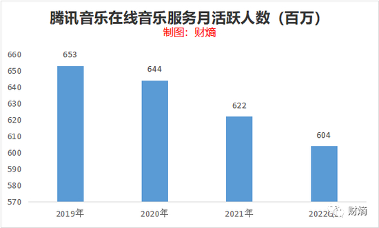 多重因素共振,让腾讯音乐的在线音乐月活跃人数近几年来持续下降——2019-2022Q1分别为6.53亿、6.44亿、6.22亿、6.04亿。