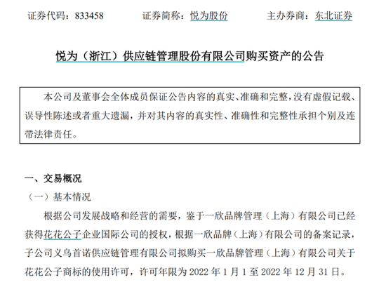 《花花公子》本是美国著名的成人杂志,后因主业不振,公司开始尝试将品牌授权给中国内地的厂家。花花公子因此在中国遍地开花,包括男女服装、儿童服装、内衣、家居服、床上用品、手表、箱包、太阳镜等。此次和辛巴合作的是新三板挂牌公司悦为股份(833458.NQ)的孙公司——玛卡服饰。2021年12月,悦为股份曾通过购买资产获得了花花公子授权,被允许在中国大陆地区内衣品类中使用花花公子商标。