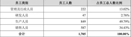 虽然燕之屋强调自己拥有强大的科研团队,但截至报告期末,燕之屋研发人员仅47人,占员工总人数比例为2.76%。其中,在燕之屋的员工中,高中以下学历的员工占到了将近一半。