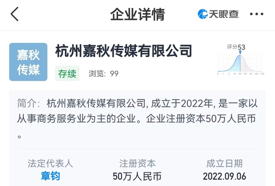 淘宝直播数据显示,香菇姐姐粉丝量为26.2万,所属MCN机构为杭州嘉秋传媒有限公司。而天眼查资料显示,杭州嘉秋传媒有限公司成立于今年9月,与“香菇来了”背后的杭州柏钧文化传媒有限公司无资本关联。