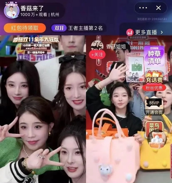 为了给直播间引入更多流量,北京商报记者还注意到,当前淘宝直播能实现两个账号的现场直播连麦,意味着直播间也能互相导流了。在“香菇来了”10月24日晚间的直播期间,其与“香菇姐姐”账号便进行了一系列秒杀等互动。