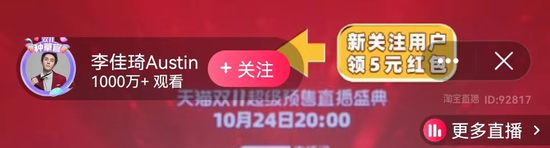 然而,北京商报记者注意到,今年“双11”前夕,淘宝首次将直播观看量模糊化,超过1000万的场观仅显示“1000万+”。按照去年李佳琦与薇娅的战绩,其预售首日的观看量达到了2.5亿和2.4亿。那么,今年为何要抹去该数字?对此,淘宝直播相关负责人未向北京商报记者解释。