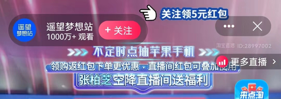 就连前期大量造势的罗永浩、张柏芝进入淘宝直播间,也很难一夜爆红成为销冠。10月24日晚间7点左右,李佳琦、蜜蜂惊喜社的场观量已经轻松突破1000万,罗永浩则是在开播两小时后达到这一数字。而借助李佳琦、罗永浩等曝光引流的张柏芝直播间“遥望梦想站”,在晚间9点左右才终于突破了1000万场观。