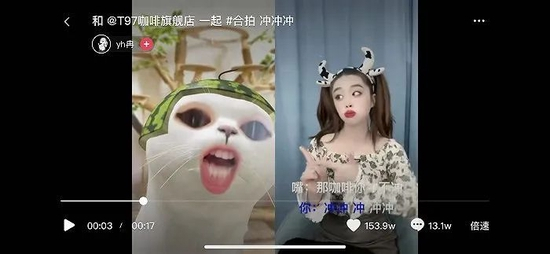 比如,“蜜雪冰城甜蜜蜜”红了之后,无论是B站还是抖音都有无数的网友搞创作,衍生出了各种版本的创作作品。T97的全网合拍视频也不在少数,该品牌称,只要模仿拍摄#咖啡冲不冲#,不论是翻拍、合拍魔性舞蹈,只要带上#满脑子都是咖啡冲不冲#等话题,都会获得专属免单券。
