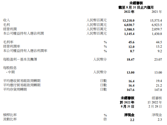 图为滔搏上半财年主要业绩数据