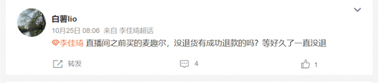 李佳琦带货的麦趣尔牛奶“翻车”后有消费者还没收到退款