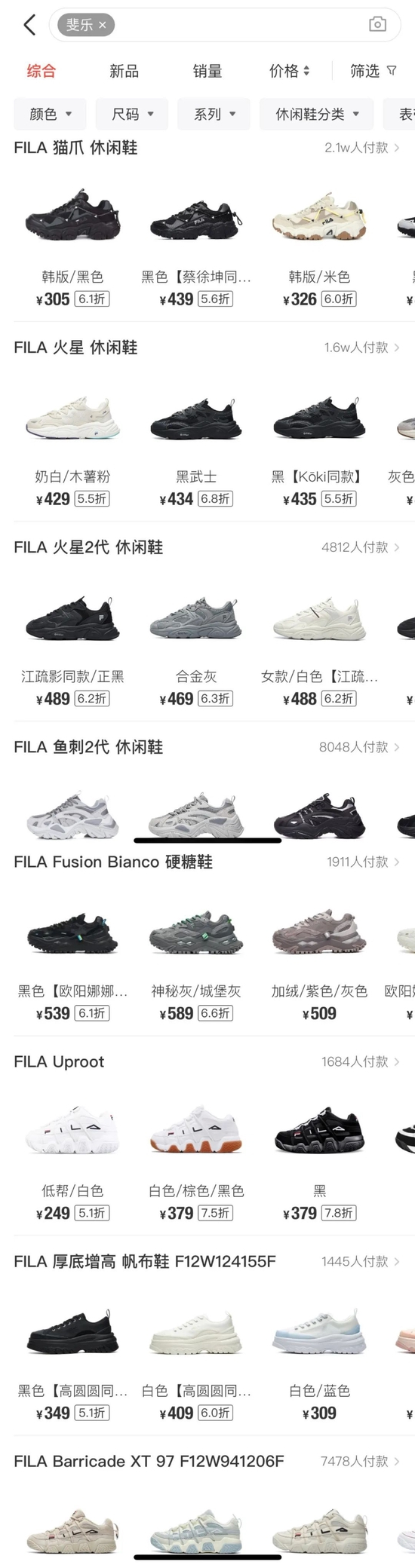 在此之后,FILA紧紧抓住老爹鞋,又推出了‘猫爪系列’、‘ADE系列’、‘鱼刺系列’等。