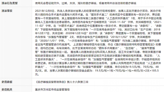 2022年2月28日,据信用中国官网信息显示,重庆万州爱尔眼科医院有限公司(以下简称万州爱尔眼科)因使用无合格证明文件、过期、失效、淘汰的医疗器械,或者使用未依法注册的医疗器械,被重庆市万州区市场监督管理局警告、处罚。