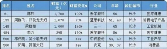 作为爱尔眼科的创始人,陈邦也是各大财富榜的常客,在2021年更是以1700亿的身价问鼎了湖南首富的宝座。