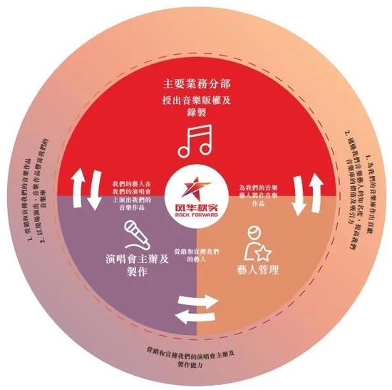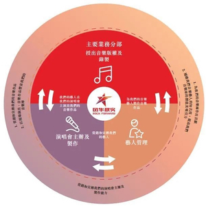 风华秋实的业务分为三个部分,音乐版权及音乐录制、演唱会主办、艺人经纪。数据显示,按2021年授出音乐版权及录制产生的收益计,公司在中国200多家音乐唱片公司中排名第四,市场份额约为1.5%。