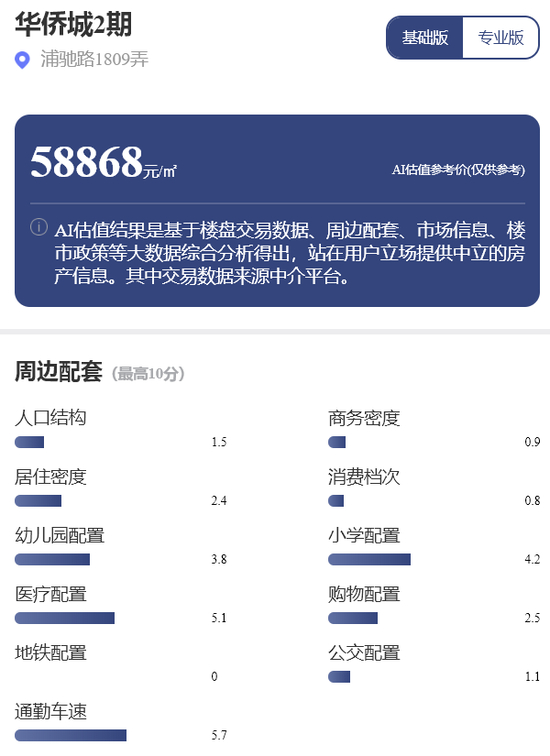 记者在实地走访中注意到,该项目所在板块以新建商品住宅、别墅区为主,整体居住环境优良,市政规划相对合理。周边各类配套、医疗设置和绿化设施也较为完善。每经品房小程序显示,华侨城二期的AI估值参考价58868元/平方米。