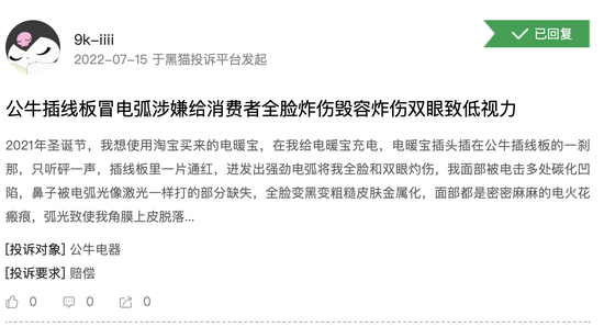 开启线上业务之后,关于公牛产品的投诉也越来越多。在黑猫平台上,关于公牛电器的投诉有120条,包括公牛品牌的线上经销虚假宣传、以次充好、售卖二手商品等,还有多条关于产品质量的投诉,例如,使用过程中发生产品冒火、爆炸等等危险。