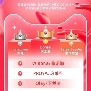 10月24日晚8点,天猫双11预售正式开启。预售的前4小时,国货美妆品牌薇诺娜,与国际品牌欧莱雅、兰蔻、雅诗兰黛一并成为4个成交破10亿的品牌。
