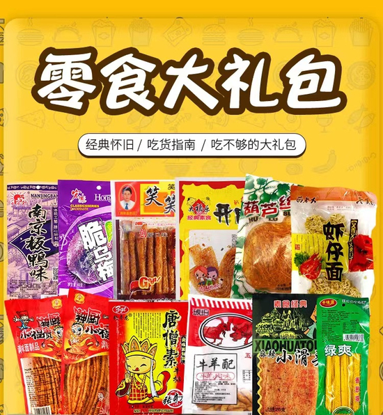网购“童年零食”真的如“开盲盒”吗?未来网记者在电商平台上搜索后发现,一些店铺以不同组合的形式售卖“童年零食”,商品页面展示多以食品包装外观为主,配以销售文案内容。商品包括“唐僧素”、“葫芦丝”、“小滑头”等,仅凭名字难以辨认食品原材料成分。