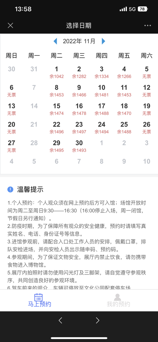 △10月24日当天,11月一整个月的参观预约名额开始放票。目前,整个11月的周末早已是无票状态。