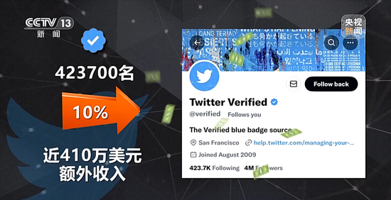 根据推特官方数据,平台目前有大约423700名“蓝勾”用户,如果其中大约10%的人每月支付8美元,那么推特公司每年将获得近410万美元的额外收入。