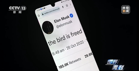 10月28日,马斯克在入主推特后发布第一条推文:鸟儿自由了。
