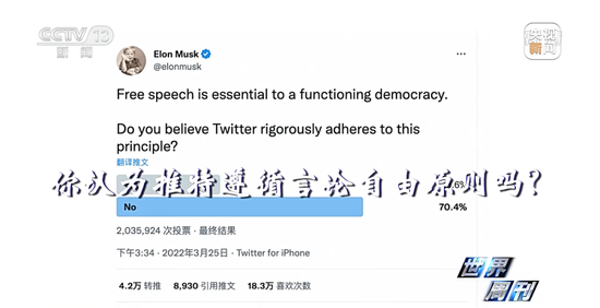 今年3月,马斯克在自己的推特账号上发起一项投票:你认为推特遵循言论自由原则吗?