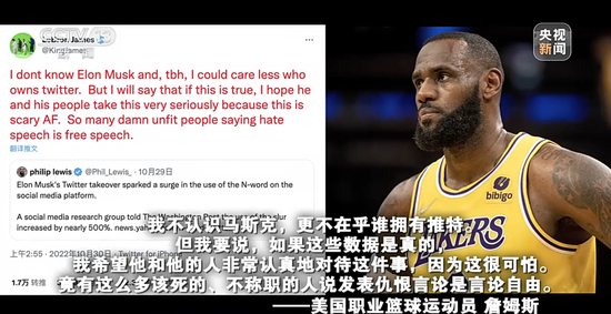 对于推特易主后出现的这一现象,美国NBA球星勒布朗·詹姆斯予以怒斥。
