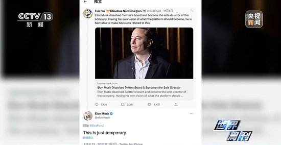 科技媒体“TechCrunch”特约编辑 布彻:马斯克没有太多选择,因为他是高价购买的,他花了440亿美元。而目前这个平台是亏损的,如果他不想把刚刚花掉的钱都打水漂,他就必须引入新的功能和商业模式。