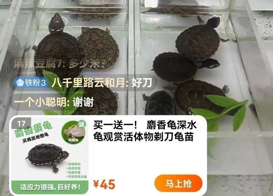据一位喜爱养龟的用户介绍,淘宝直播中有些直播间还设置了“托儿”。“我曾看到过直播间里连续拍两个相同的乌龟,没人拍就流拍,一有人拍,能从10多快拍到几百块,两个‘托儿’拍了有几十次,但要是没人继续出价,他俩就不要了,直接流拍。而且这俩人也没有在评论区说过话,做戏都不演全套。”该用户表示。