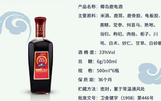 时至今日,椰岛鹿龟酒也一直以保健酒的名头在售卖,椰岛鹿龟酒的产品详情里也显示,其为保健食品的批号。阮光锋告诉新浪财经,保健食品批准的功能中不包含“改善性功能”一项,宣传或者暗示“提高性功能”、“改善肾虚”、“提高持久力”的内容都是违规的。