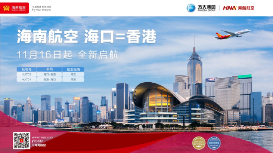 11月11日,为满足广大旅客出行需求,海南航空计划于2022年11月16日开通海口—香港往返直飞航线,作为疫情以来海南省恢复的首条国际及地区定期客运航线,该航线的开通,将为琼港两地搭建经贸、旅游和文化交流合作的桥梁,助力海南自贸港的建设。