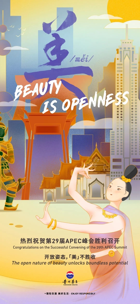 11月18日的APEC工商论坛CEO闭门午餐会上,茅台将以“链接美的未来”为主题,推动中外CEO沟通交流。同一天,在茅台公益行动APEC(泰国)站上,茅台还将以“看到美的世界”为主题,让茅台的慈善公益事业在异国他乡生根发芽。