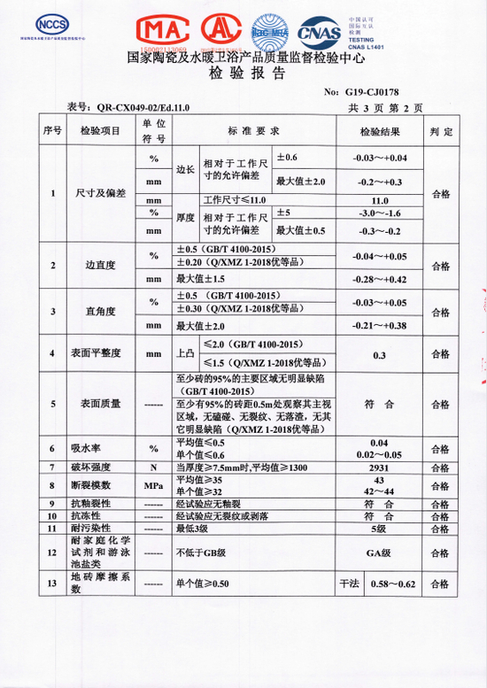 为了进一步了解有关情况,记者联系上经销门店负责人李先生,针对丁先生提出的质疑,他也一一进行了解释。首先,他指出砖是没有保质期的产品,2019年的产品不代表有质量问题。再者,他明确提到冠珠的产品都是有检测报告的,也向记者出具了一份冠珠优等品资质仿古砖的检验报告。他始终坚持地砖的平整度都是符合国家标准GB/T 4100-2015以及达到新明珠陶瓷集团企业标准当中的优等品要求。