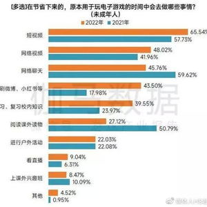值得注意的是,报告显示,在新规落实后,未成年人的娱乐行为从游戏向其他活动转移,根据用户调研,当前仍具备游戏习惯的未成年人在游戏受限后,往往会将时间投入到短视频与网络视频。