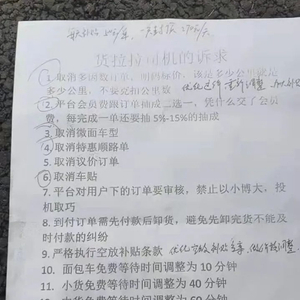 《豹变》向身在东莞参与停运的李师傅了解到,那三天整个东莞的司机基本都停止接单了。他向《豹变》展示了司机的诉求,包括“取消多因素订单”“平台会员费和订单抽成二选一”等十几条要求,多是围绕平台低价订单和抽成费用等问题。