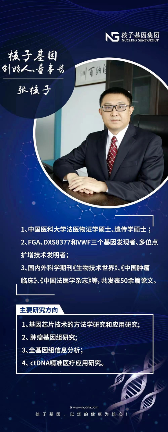 微信公众号“核子基因集团”中,对创始人张核子有全方位的介绍。