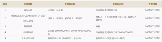 万谷菜篮子原本由钟学勇和许国伟共同出资成立,今年7月,公司股东变更为万谷国际集团有限公司。在万谷集团的官方介绍中,许国伟还被冠以万谷集团董事长之名,钟学勇则是万谷集团联席董事长兼CEO。