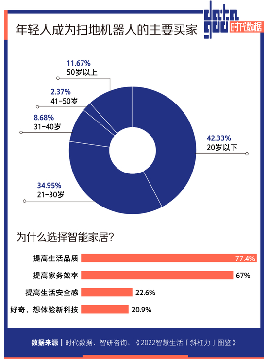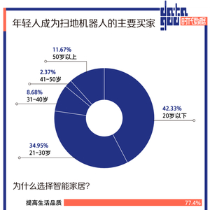 智研咨询调研,扫地机器人的主力消费群体中,21~30岁占比42.33%,31-40岁群体占比为34.95%。