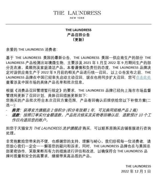 THE LAUNDRESS召回事件影响扩大,消费者:国内外退款搞“双标”