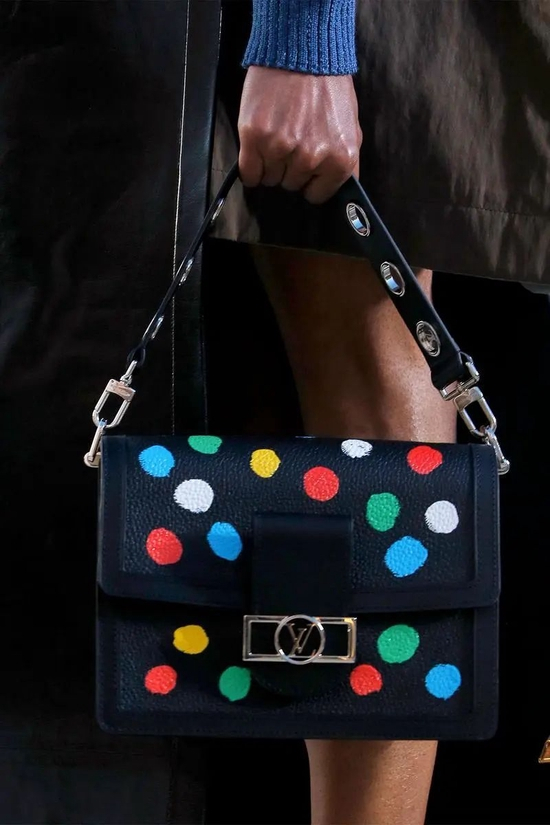 在Louis Vuitton 2023早春女装大秀上提前“剧透”的部分手绘波点和金属球装饰包袋