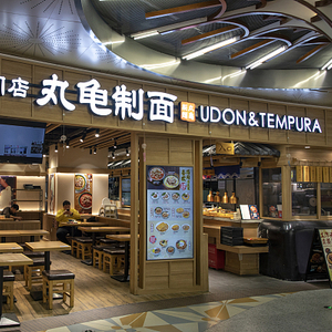丸龟制面的门店经营模式采用开放式厨房、半自助服务,其主要单品乌冬面是日本三大特色面食之一。不过本质上它的产品和吉野家旗下的“花丸乌冬面”类似,属于日式快餐范畴,号称“86秒出餐”,此外搭配天妇罗等日式小食配菜,客单价在30-40元/人左右。