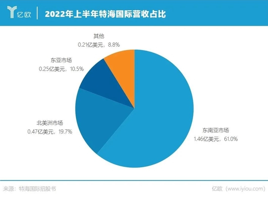 招股书显示,东南亚市场是特海国际的主要收入来源。2022年上半年,东南亚、东亚和北美洲市场分别贡献了61.0%、10.5%和19.7%的收入。
