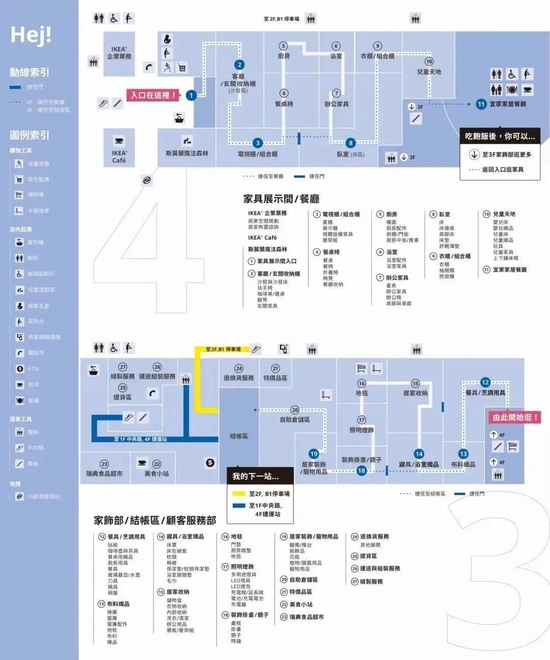 宜家不一样,从入口到出口,顾客不能随意走动,必须途经所有商品。“之”字形的展区布局,用途很明显,尽可能地把顾客留在店内。