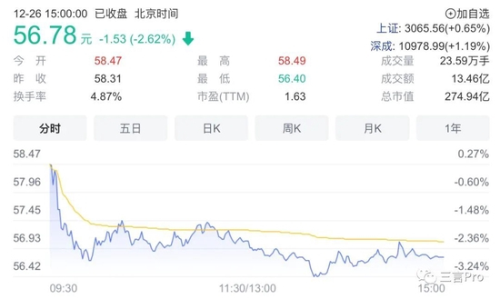 截止今日收盘,九安医疗股价报56.78元,下跌2.62%,总市值274.94亿元;