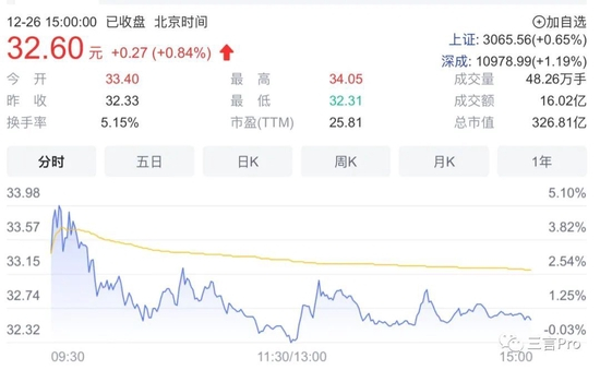 截至今日收盘,鱼跃医疗股价报32.6元,上涨0.84%,总市值326.81亿元;