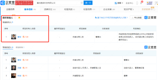企查查信息显示,该公司成立于2015年6月,注册资本4.5亿美元,法定代表人为洪锋,由小米金融(香港)有限公司全资持股,最终受益人为雷军。