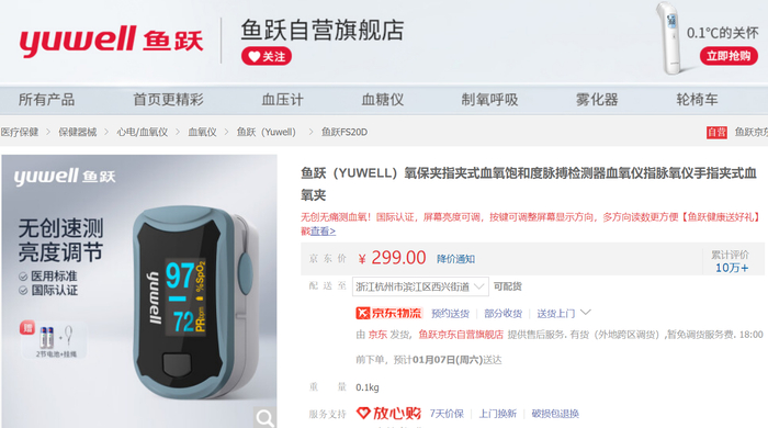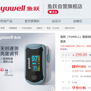 鱼跃医疗的经销商表示,现在血氧仪的价格都是299元,而且必须要去鱼跃医疗自营旗舰店购买,其他店铺的货不能保证真。
