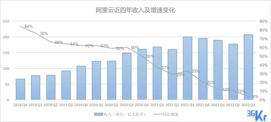 由于新市场开拓不力,最近几年,阿里云增速从2018年的超过80%,此后一路跌至最新季度的不足4%,创历史最低点。