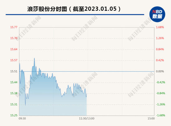 盘面上,截至今日午间收盘,浪莎股份(600137.SH)跌0.84%,报15.38元/股,总市值14.95亿元。