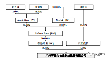 从股权架构上来看,环亚科技仅有两名股东,由香港环亚、云亚投资分别持股98.36%、1.64%。