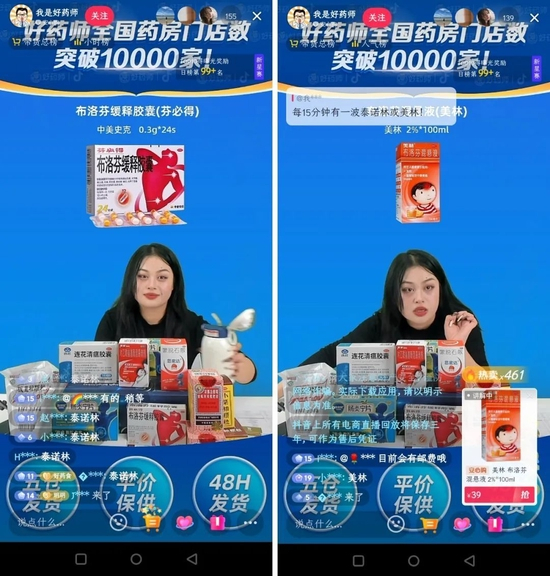作为首批被抖音邀请的店铺,好药师大药房平价保障供应的药品也主要以芬必得布洛芬缓释胶囊、以岭连花清瘟胶囊、美林布洛芬混悬液、999感冒灵颗粒、京都念慈菴蜜炼川贝枇杷膏、整肠生地衣芽孢杆菌活菌胶囊等OTC热门药品为主。