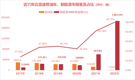 新能源汽车持续爆发的2022年,比亚迪累计销售超过186万辆,成为全球新能源汽车销量第一。