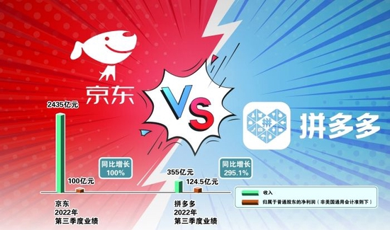 当然,“百亿补贴”背后,拼的是定价权,靠的是现金流。2019年6月上线至今,拼多多百亿补贴即将“补”入第四年,农产品与工业品一直是重点品类,特别是对优质农货的覆盖规模和补贴力度还在进一步增加。截至2022 年9月30日,美国通用会计准则(GAAP)下,京东现金及现金等价物余额为897.89亿元,拼多多现金及现金等价物余额为744.10亿元。郝智伟认为,二者尚可一战。